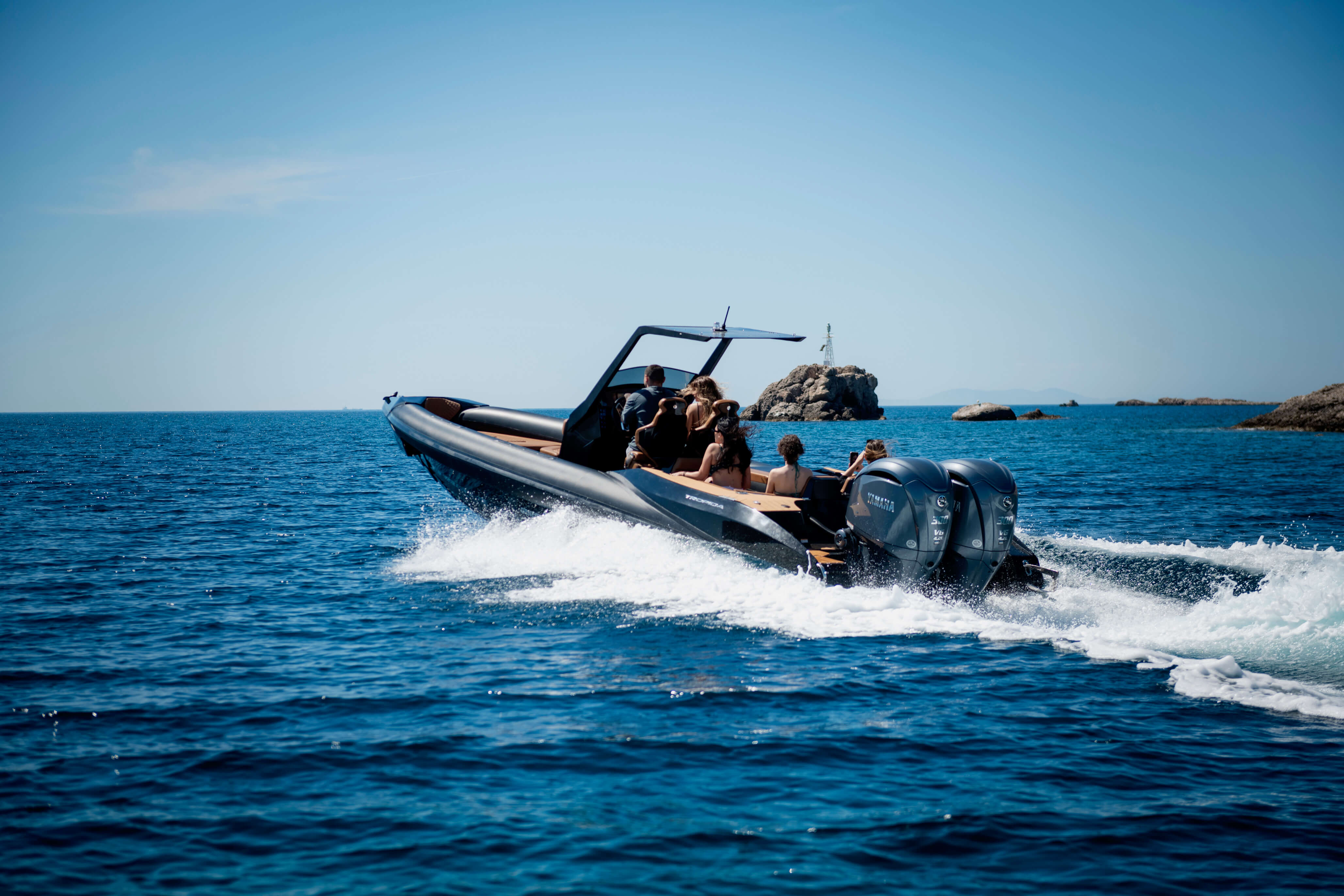 The Genesis is a high-performance RIB with a 58˚ deadrise at the bow and deeply processed V, for maintained high performance and fuel economy. The Genesis is powered by twin 300hp engines, so you can reach your destination quickly and safely.